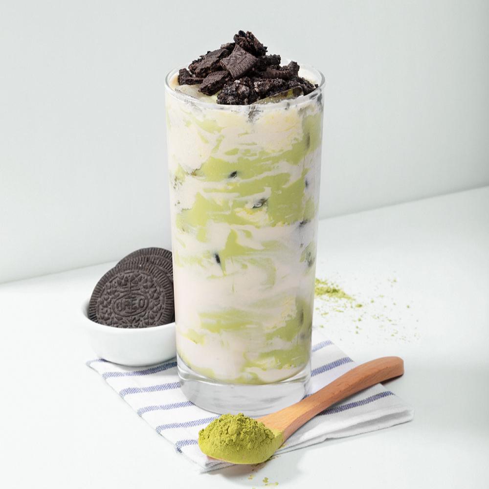 Frappe matcha con oreo y brulee cream
