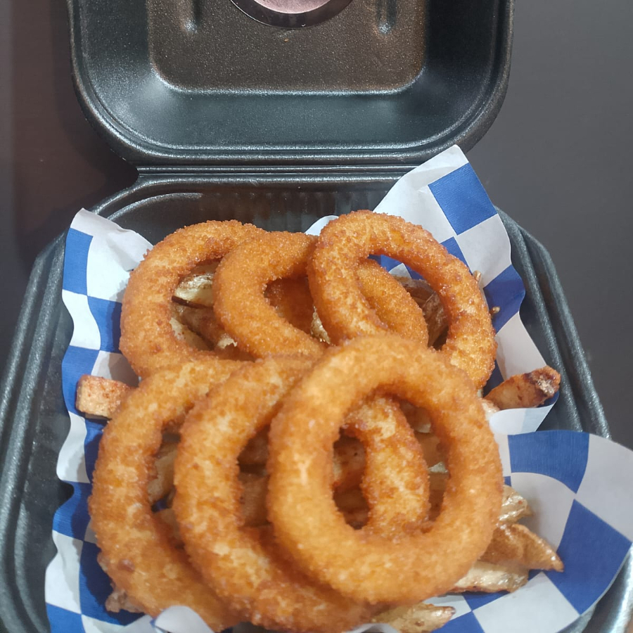 Aros de cebolla con papas fritas