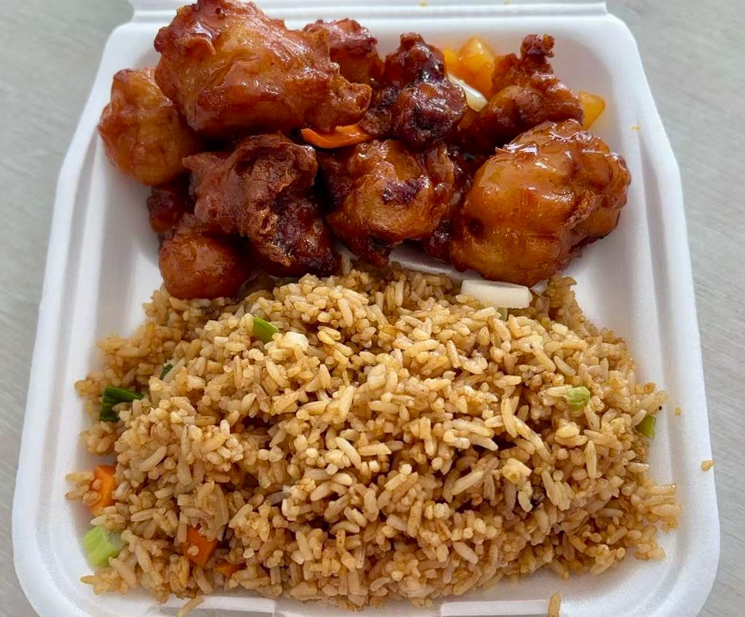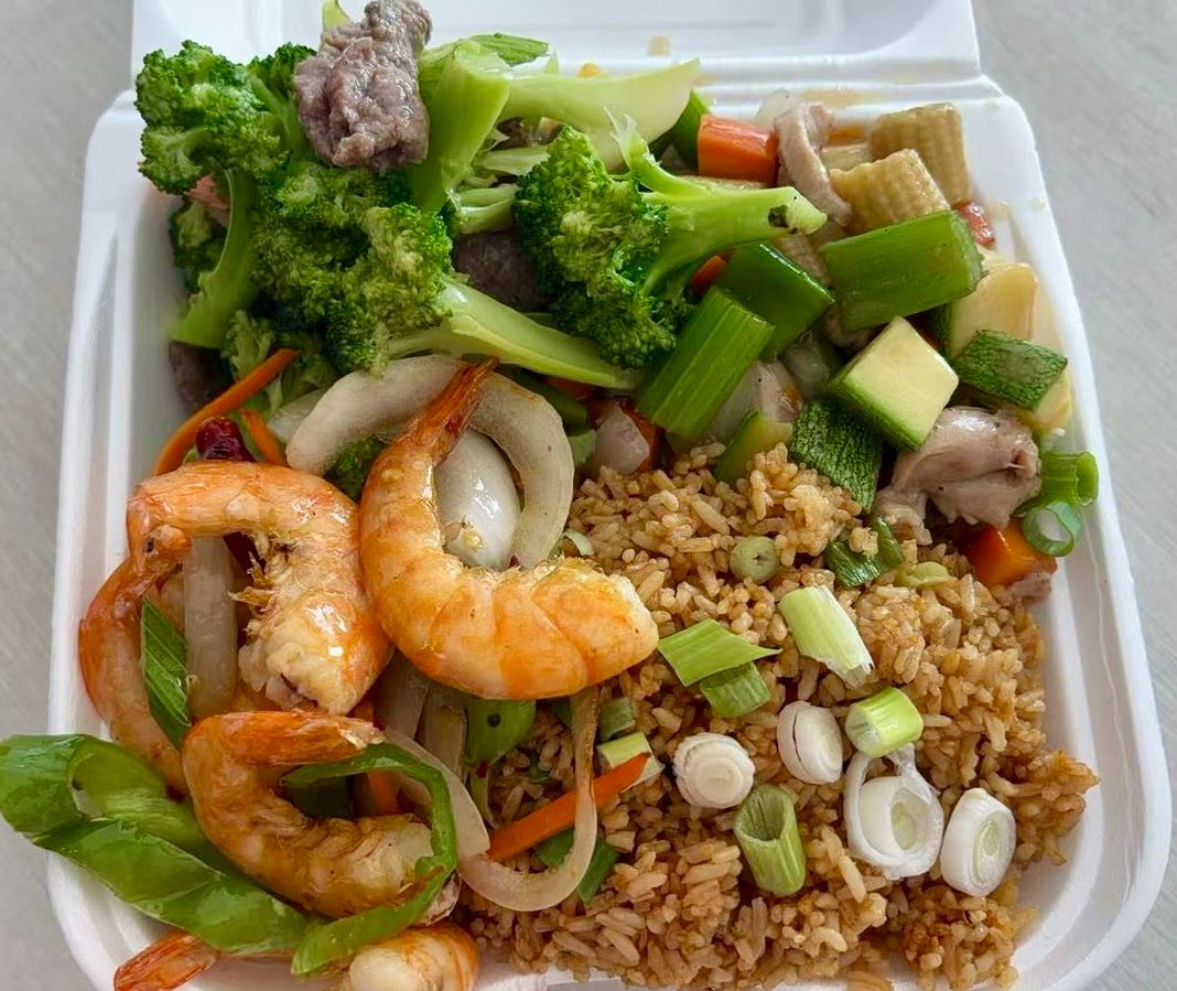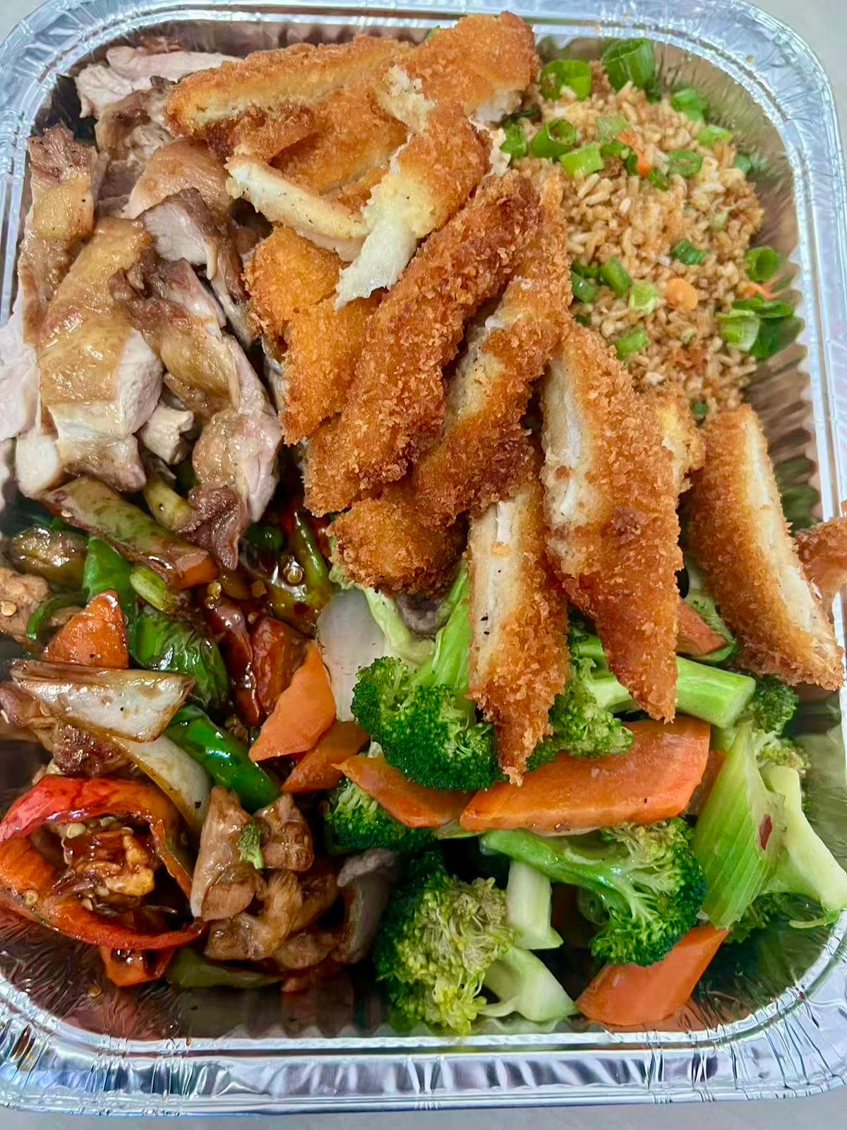 Pollo y verduras salteadas al wok con salsa chop suey.