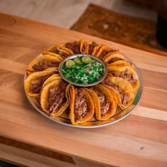Orden de ½ kilogramo de barbacoa, acompañado de consomé, tortillas, verduras y salsas.