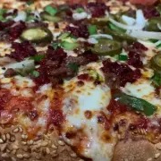 Queso mozzarella, carne, chorizo, morrón, jalapeño y cebolla