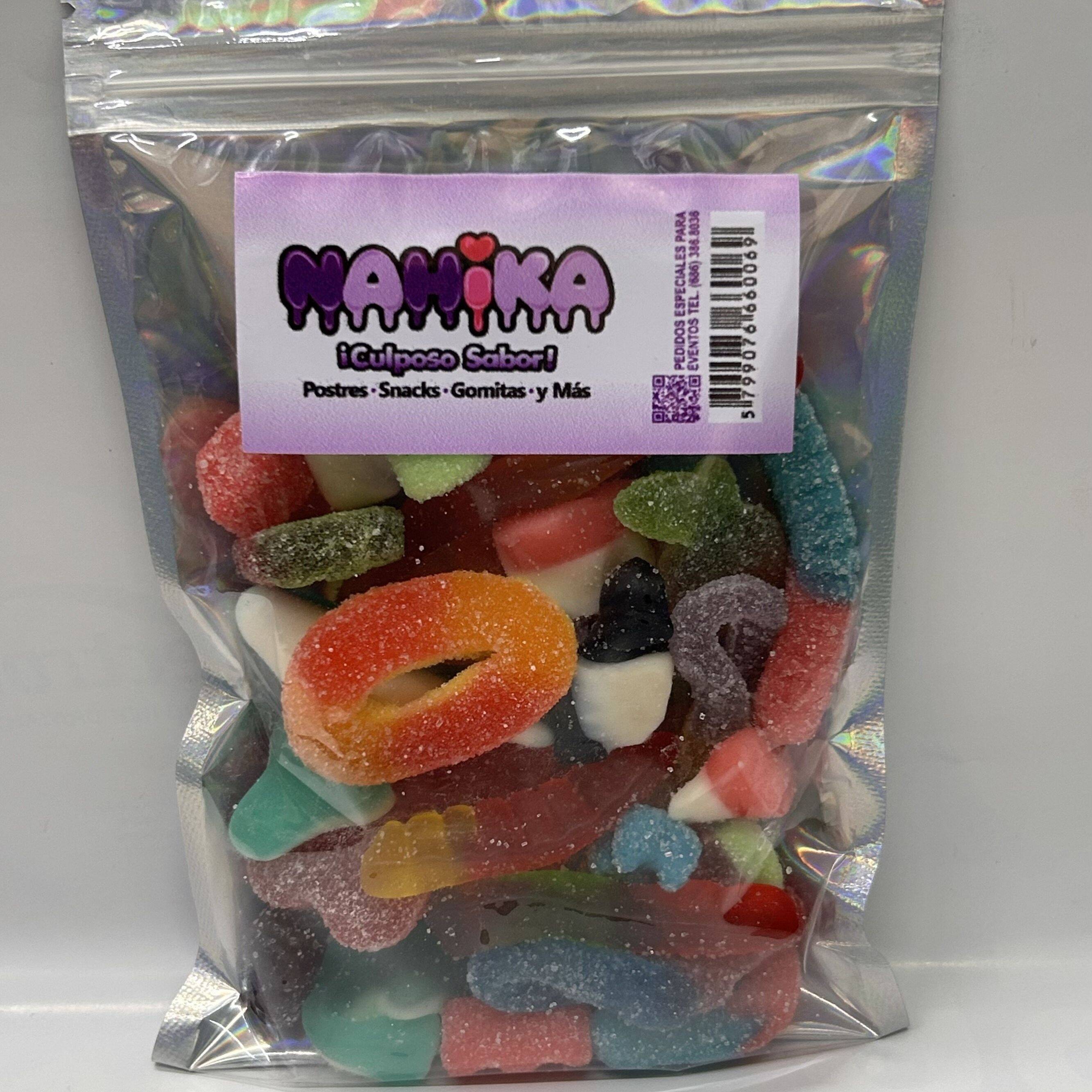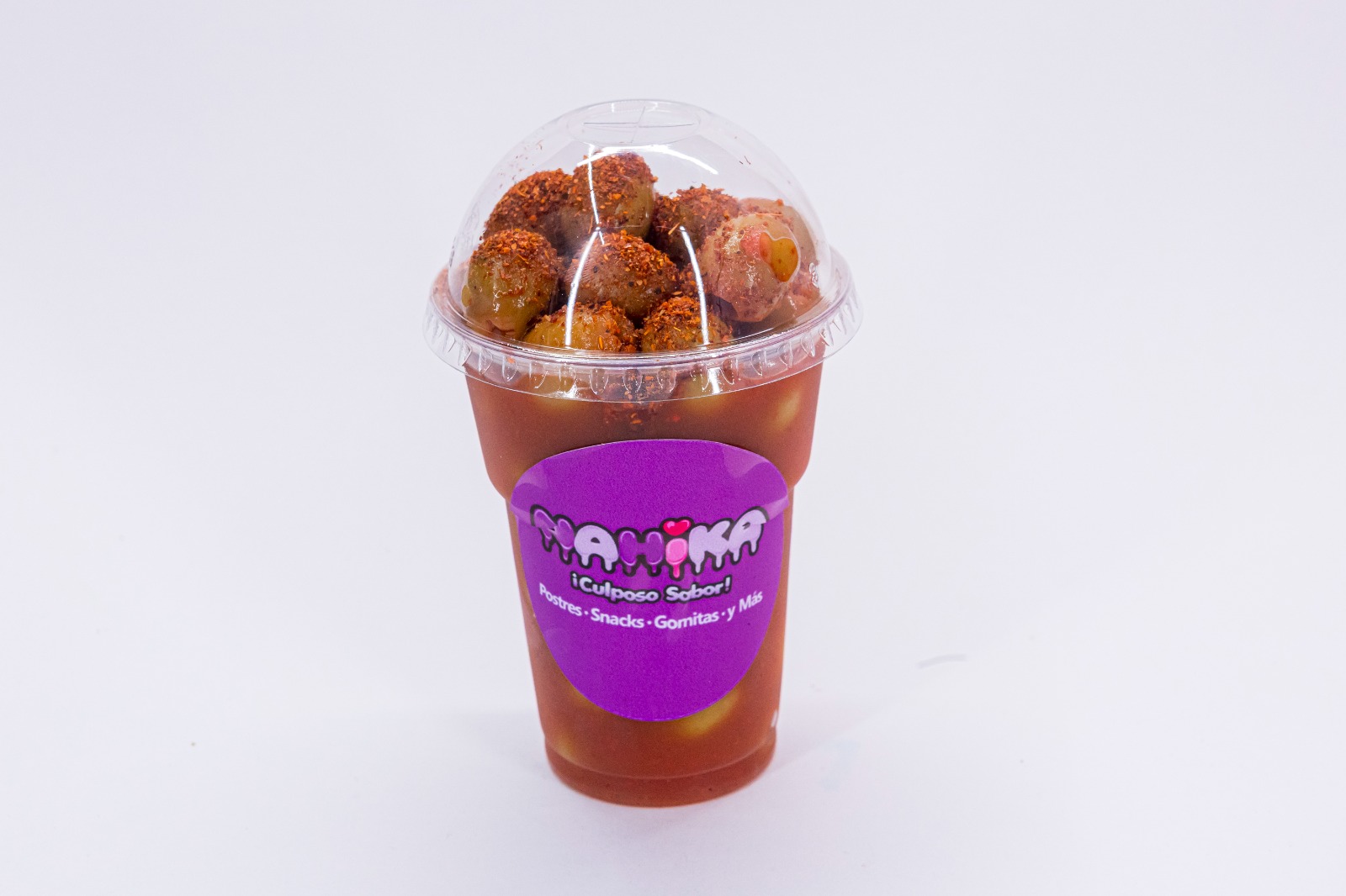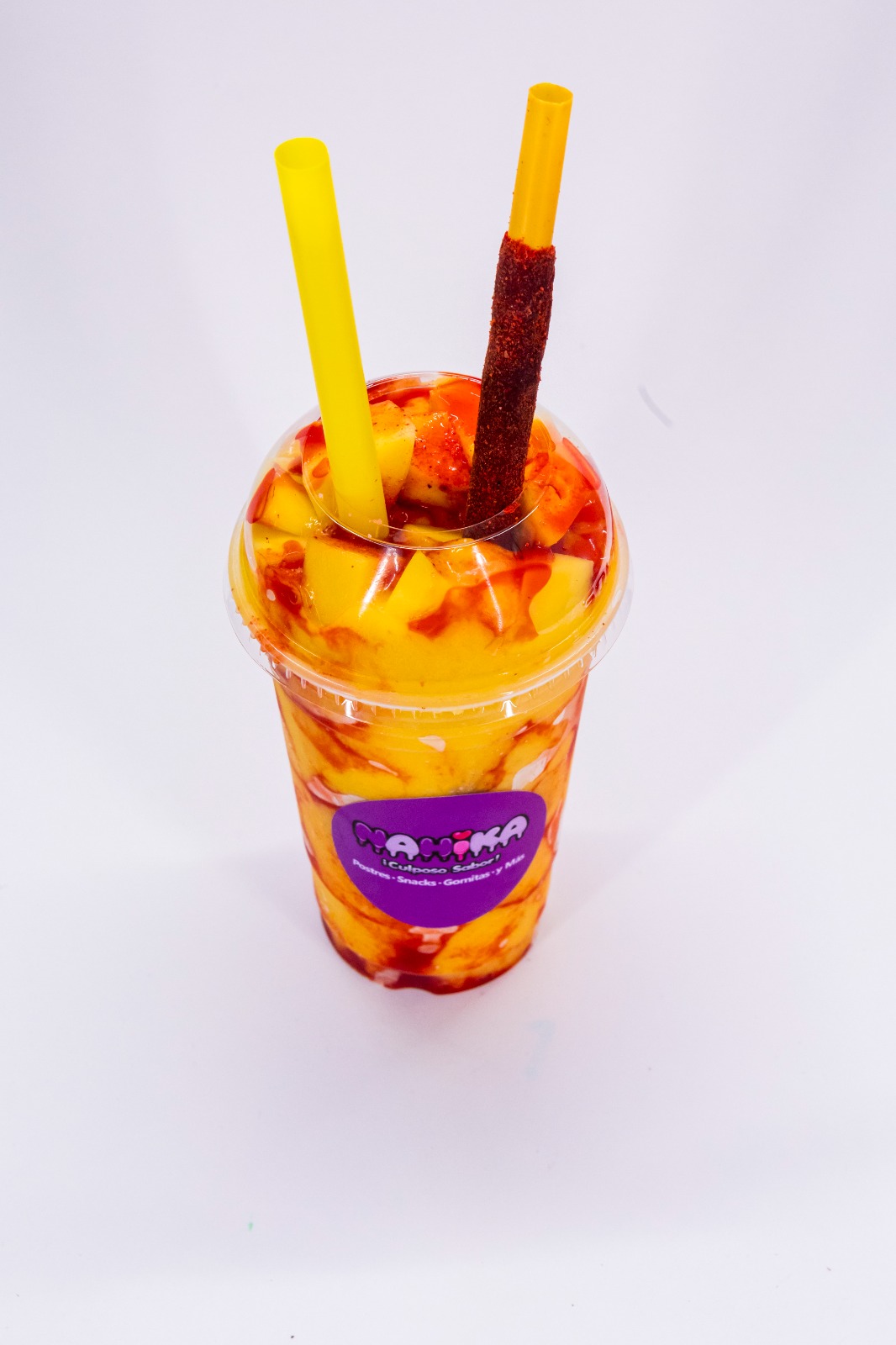 Fruta mixta preparada estilo loca (chile, limón y salsas).