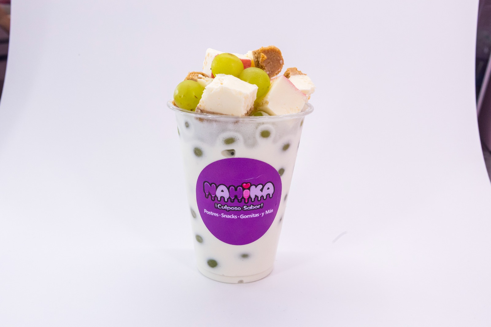 Uvas frescas con crema dulce.