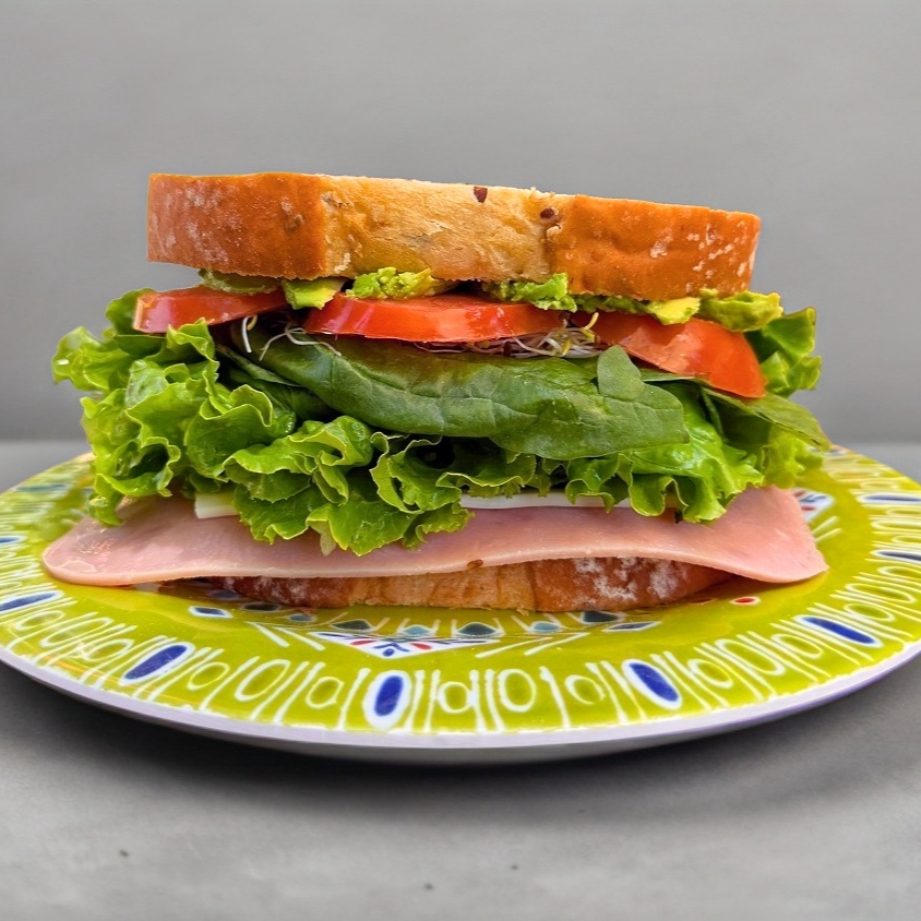 Jamon de pavo / Queso manchego / Tomate / Aguacate / Espinaca / Lechuga / Alfalfa / Pan multigrano