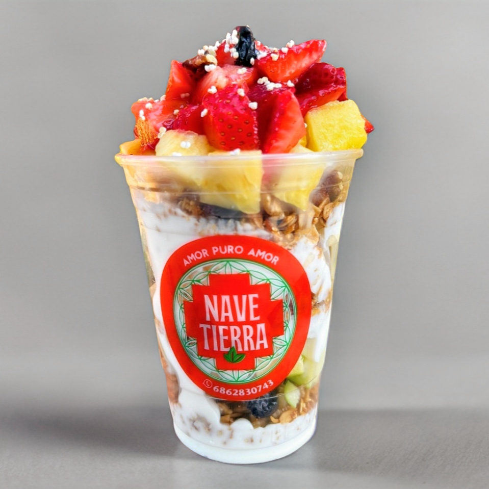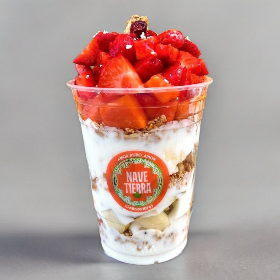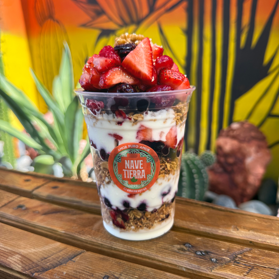 Fruta con yogurt natural & granola, Fresa / Moras / Frambuesas / Zarzamoras / Nuez / Arandanos / Almendras
