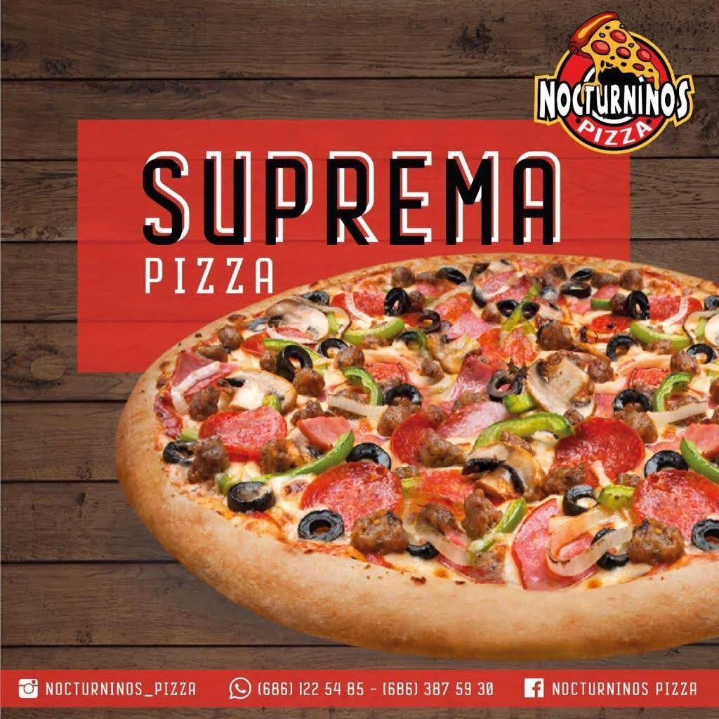 Salsa de tomate, queso mozzarella,peperoni, morron, cebolla, salchicha italiana, champiñon y aceituna