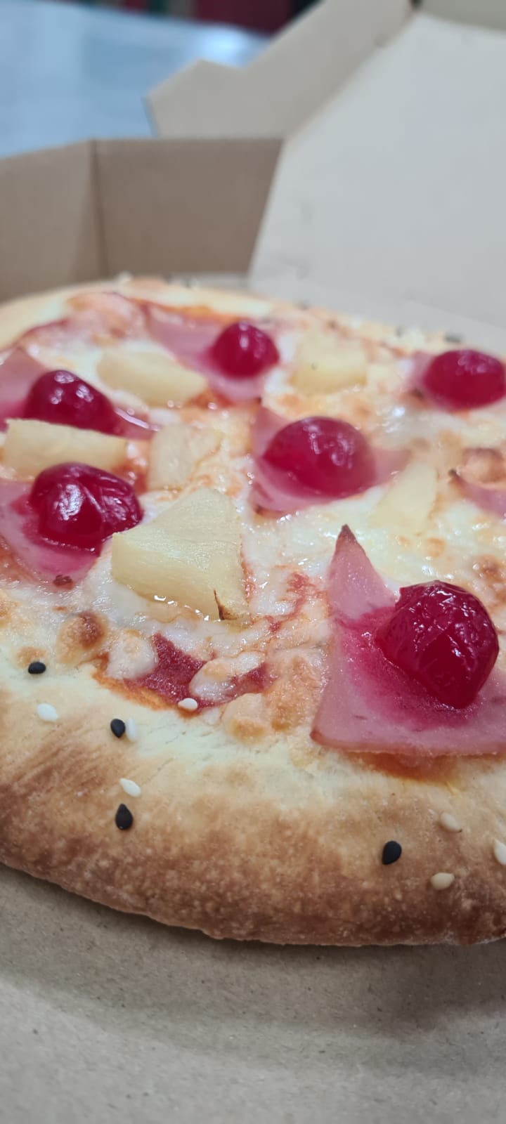 Salsa de tomate, queso mozzarella, jamon, piña