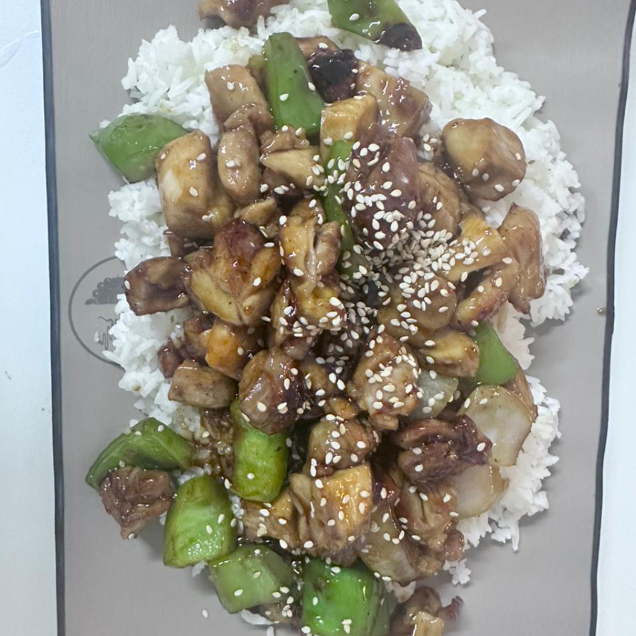 TERIYAKI POLLO CON ARROZ BLANCO