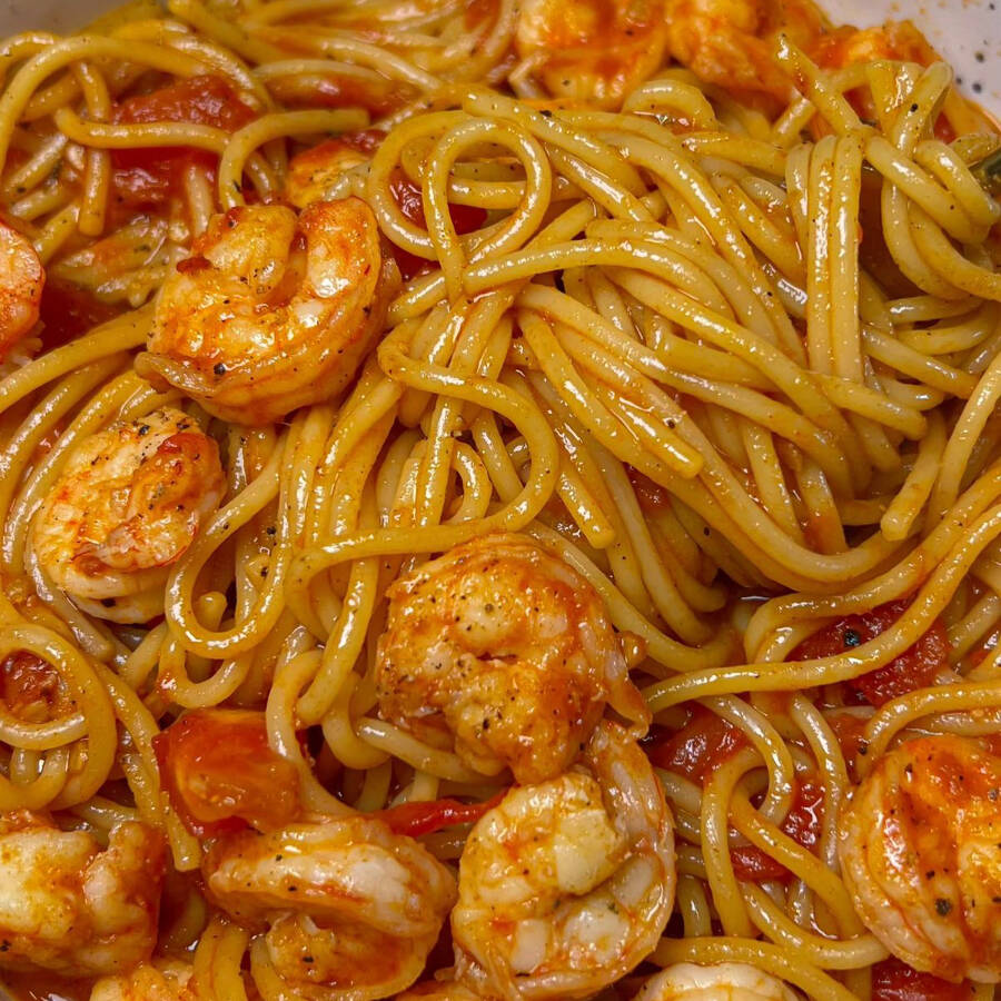 Finos fideos con camarón