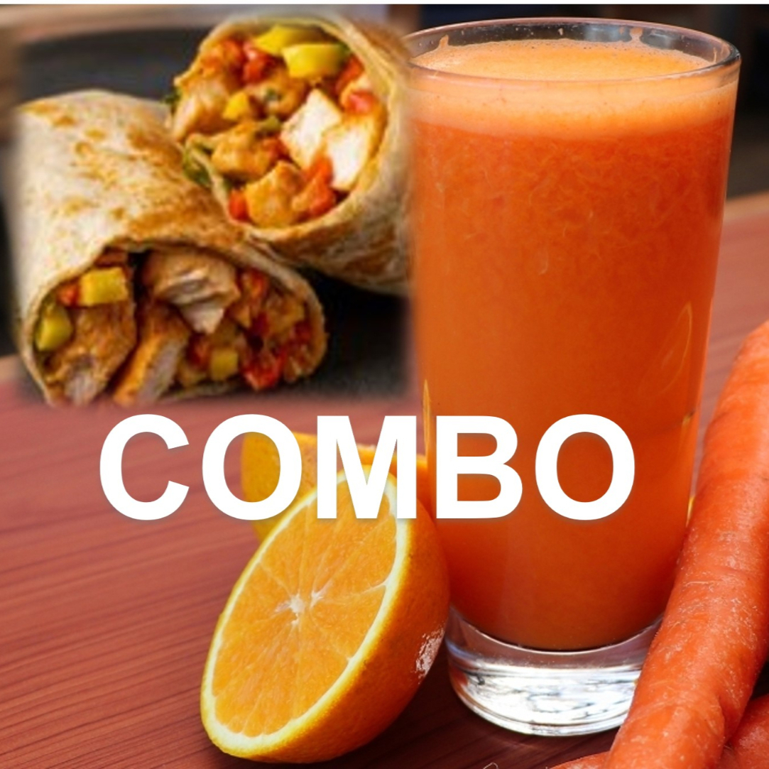 WRAP BURRITO(H) POLLO+JUGO ZANAHORIA Y NARANJA