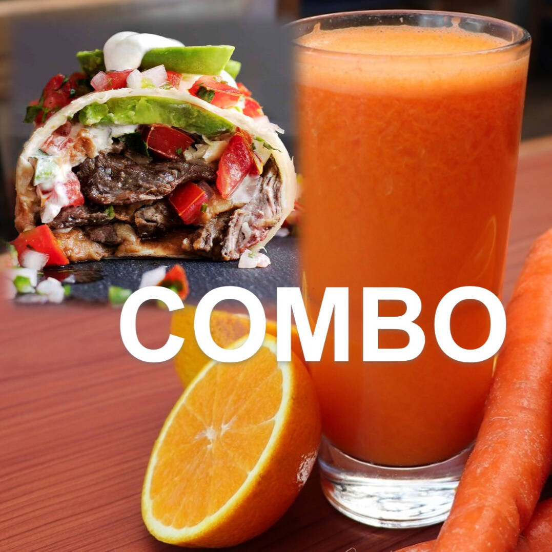 WRAP BURRITO(H) ASADA+JUGO ZANAHORIA Y NARANJA