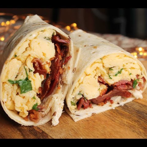 BURRITO GRANDE, BIEN REPORTADO-DE HUEVO REVUELTO CON TOCINO, ESPINACAS EN TORTILLA DE HARINA.PORCIONES FIT