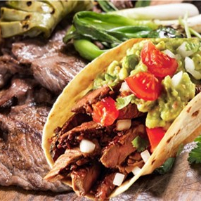 TACO DE CARNE ASADA CON VERDURAS Y AGUACATE