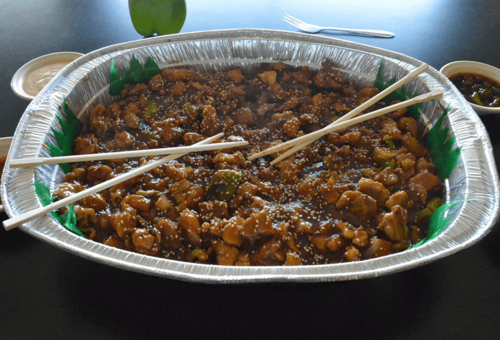 Charola combinacion especial grande, para 5-6 Personas con Teriyaki de Pollo, 4 Rollos de especialidad a elegir y Pasta con Vegetales.