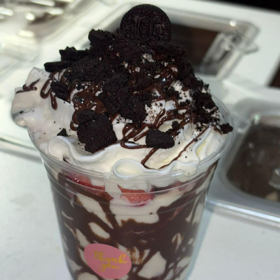 Nuestras fresas con crema mas chocolatosas de 16 oz (nutella, jarabe de chocolate, chispas de chocolate). Una explosión de sabor para los más antojosos 🍫💥