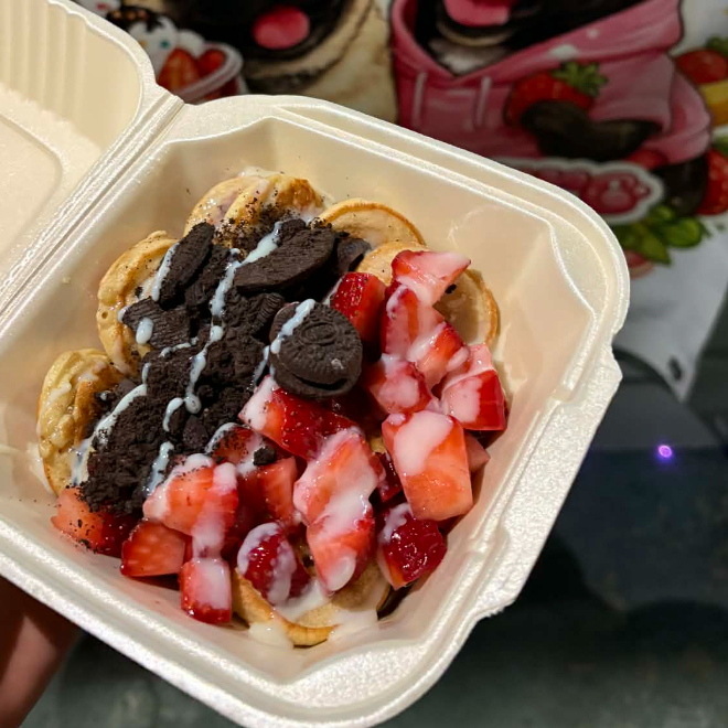Fresas con crema y trocitos de Bubulubu (16 oz). Chocolatoso, suave y delicioso 😍