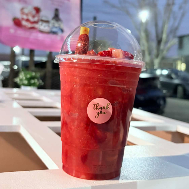 Vaso grande de 16 onzas. Fresas frescas con crema dulce, bien servidas y cremositas. El clásico que nunca falla 🤤