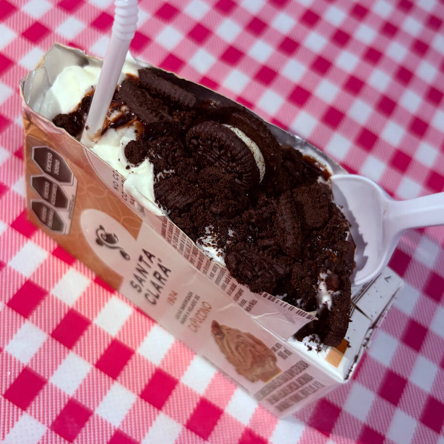 Lechita Santa Clara con crema batida, el topping de tu elección y algún jarabe de nuestra lista✨