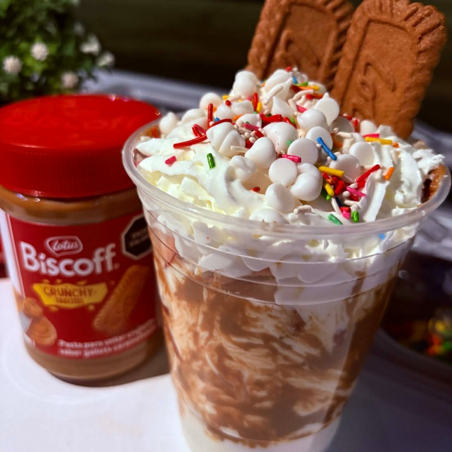 Fresas con crema + galleta Lotus (16 oz). Dulce, cremoso y con ese toque caramelizado irresistible 🔥