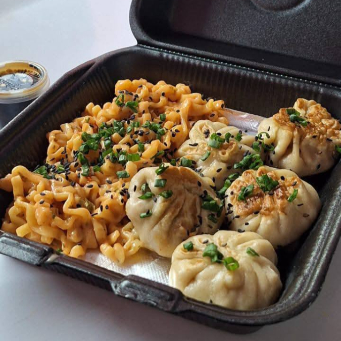 Sopa Buldak de tu eleccion con dumplings.