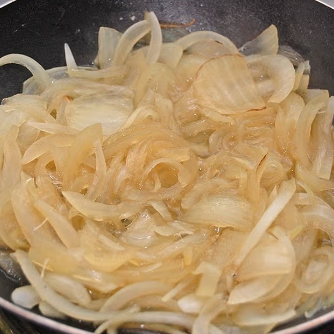 Cebolla blanca asada y sazonada con sal de ajo, pimienta y sal.