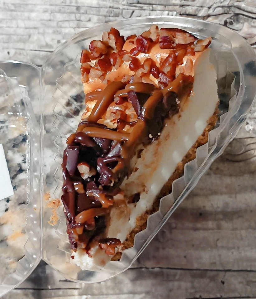 Pay De Queso Con Una Capa De Chocolate, Dulce Cajeta Y Nuez Crujiente.