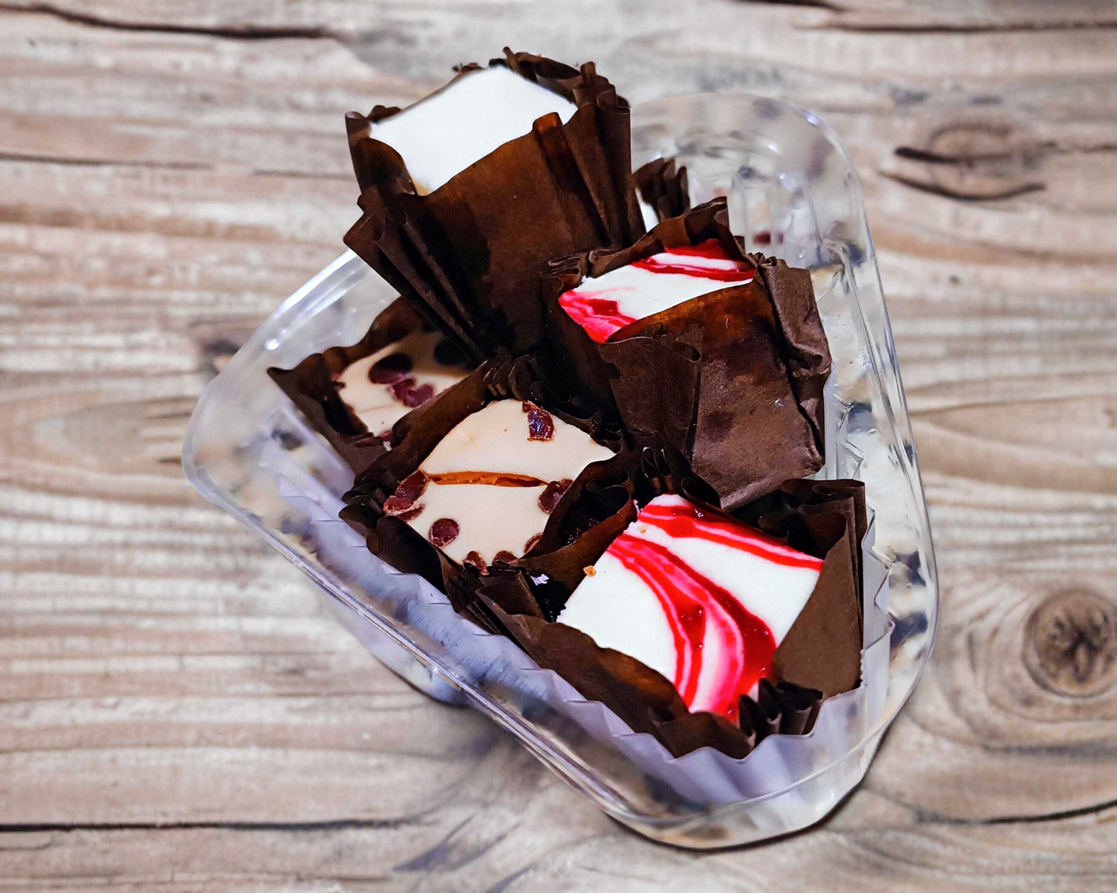 Variedad De Miniaturas De Pay De Queso, Son 3 Sabores Diferentes Pay De Queso New York, Pay De Queso Con Chispas De Chocolate, Pay De Queso Veteado De Fresa.