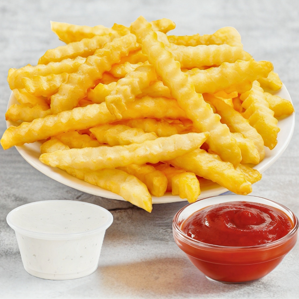 Papas a la Francesa con Dip Ranch y Catsup