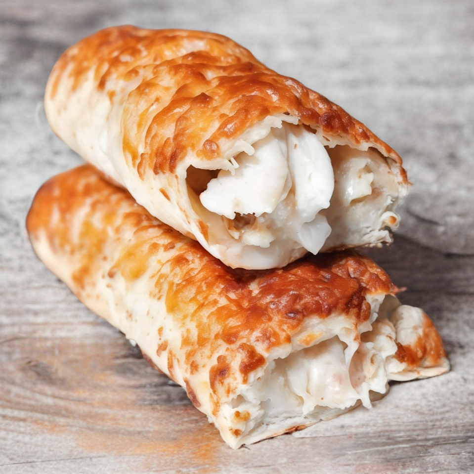 Disfruta nuestros rollos de pollo horneados, rellenos de pechuga de pollo, queso mozzarella, tocino ahumado, aderezo césar y cebolla, envueltos en masa artesanal. ¡Una delicia en cada bocado!