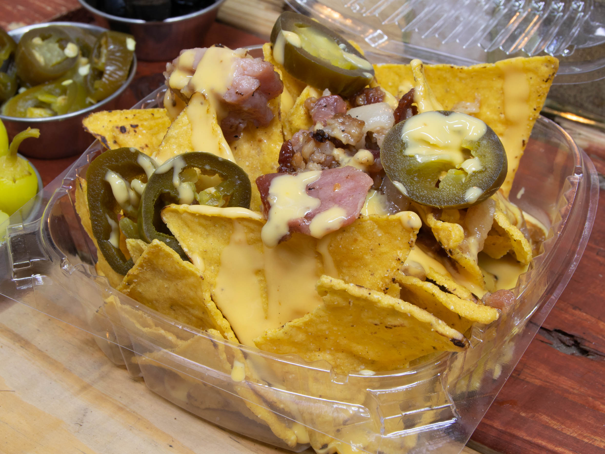 NACHOS MARCA KRIS ACOMPAÑADOS DE QUESO,TOCINO Y CHILE JAPEÑO