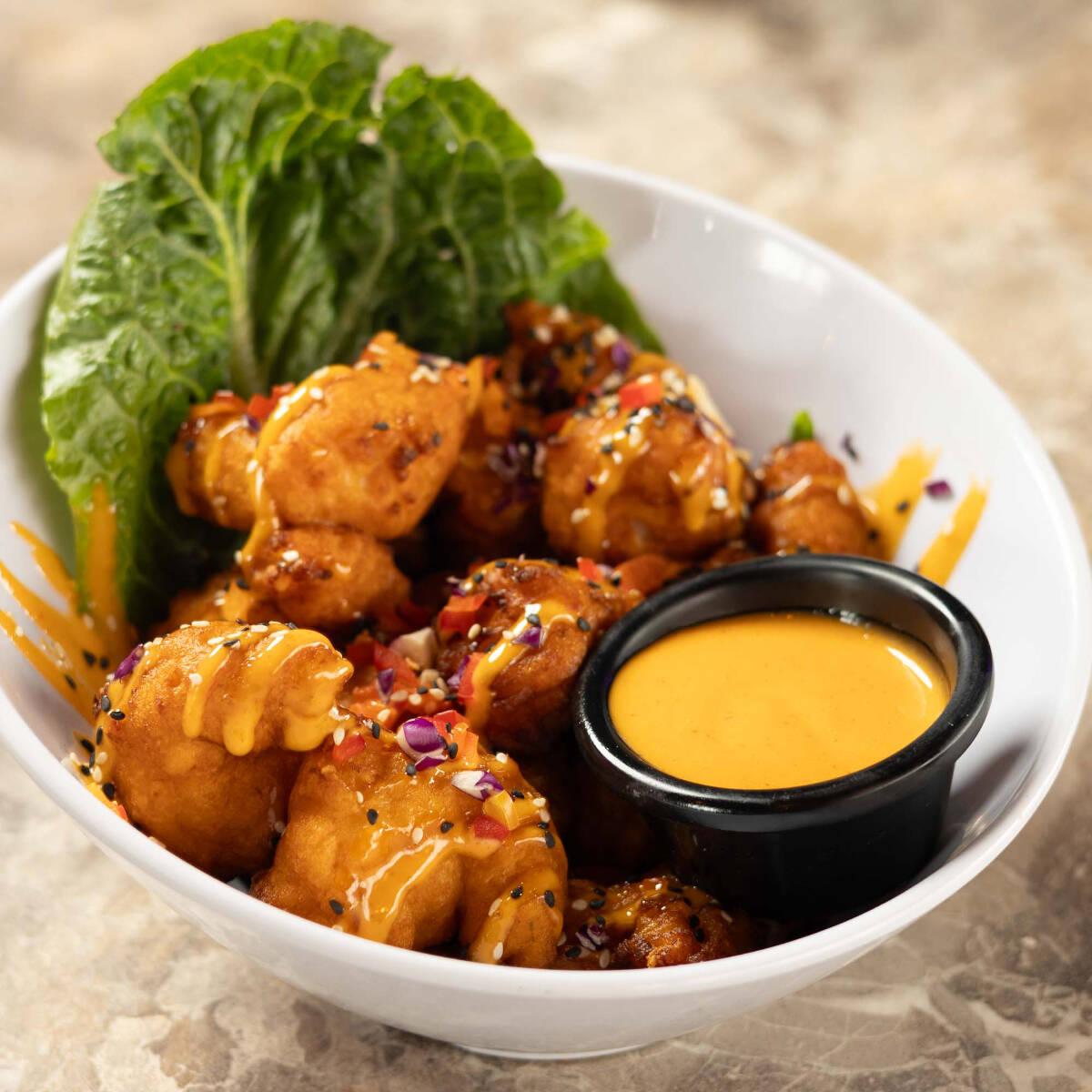 Camarones crujientes con aderezo chipotle.