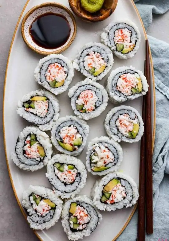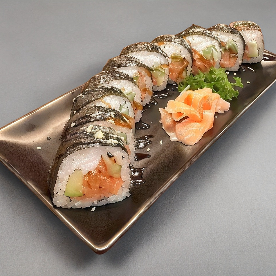 Rollo natural, relleno de aguacate, pepino, Philadelphia y surimi (10 piezas).