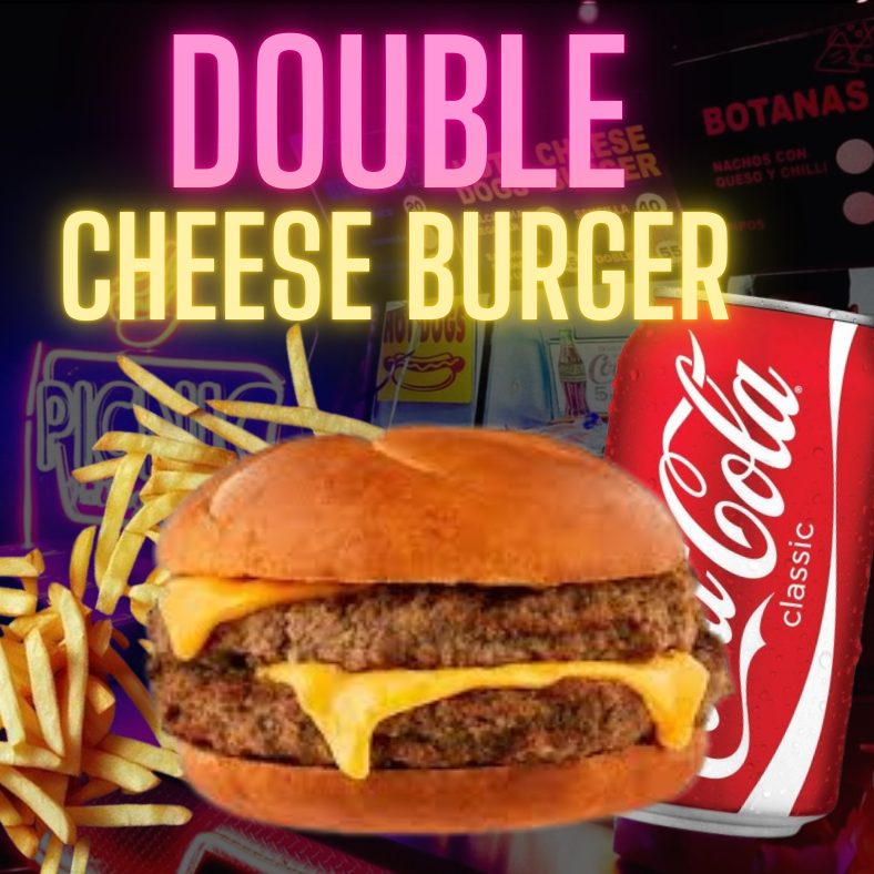 Sabor simple y clásico en cada bocado. Disfruta de nuestra Double Cheeseburger con dos jugosas hamburguesas de carne 100% pura, queso americano derretido, y pan brioche suave y dorado. Solo ketchup y mayonesa para resaltar su esencia. ¡Una hamburguesa que celebra la simplicidad y el buen gusto!