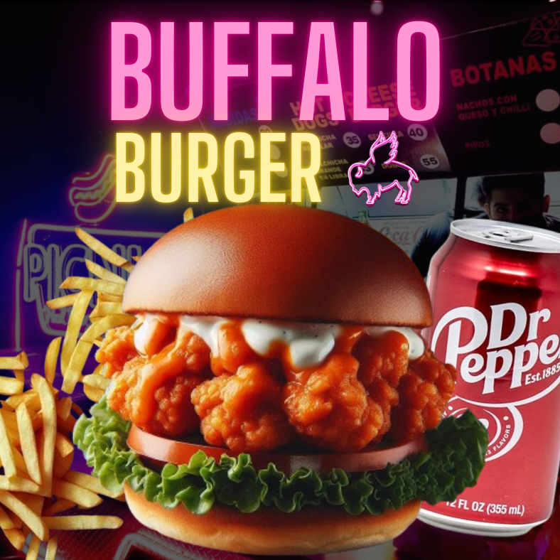 Jugosas piezas de boneless estilo búfalo en pan brioche, con lechuga fresca, tomate y aderezo ranch. ¡Una combinación irresistible de sabor y textura!