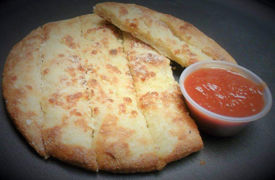 Delicioso pan de ajo personal , con mantequilla, sal de ajo, queso parmesano y queso mozzarella, acompañado de salsa pizza.