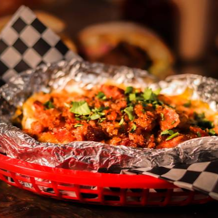 Salsa de tomate, queso mozzarella, chorizo argentino, cebolla morada, cilantro y chimichurri.
