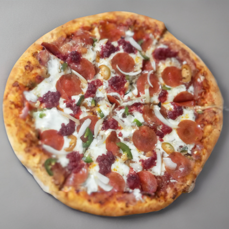 Pizza Mexicana Grande (Queso mozarella, peperoni, chile jalapeño, chorizo, cebolla)