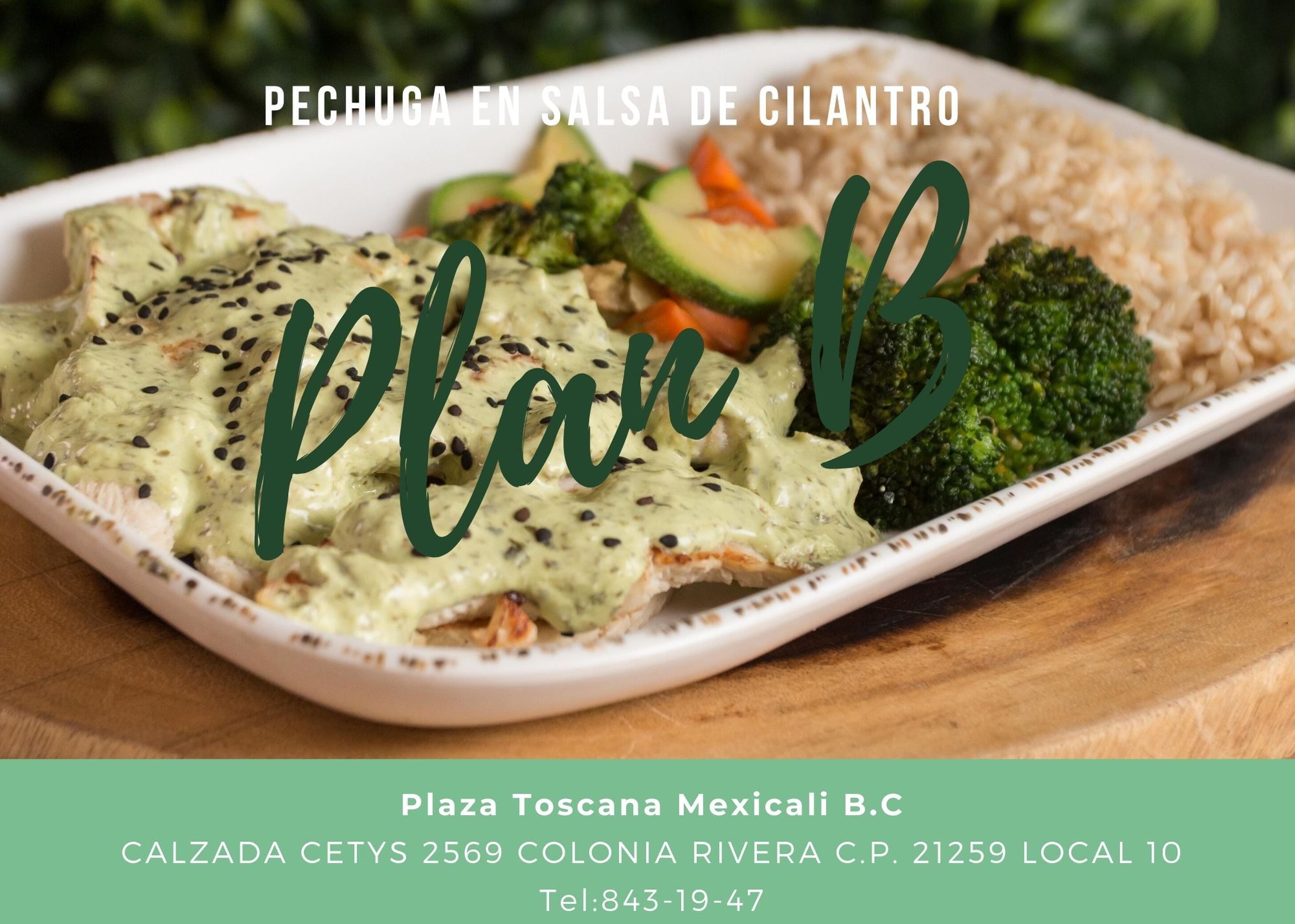 Pechuga de pollo de 200gr, espinaca, espárragos, champiñón, bañado en salsa de cilantro. Montado en cama de arroz.
