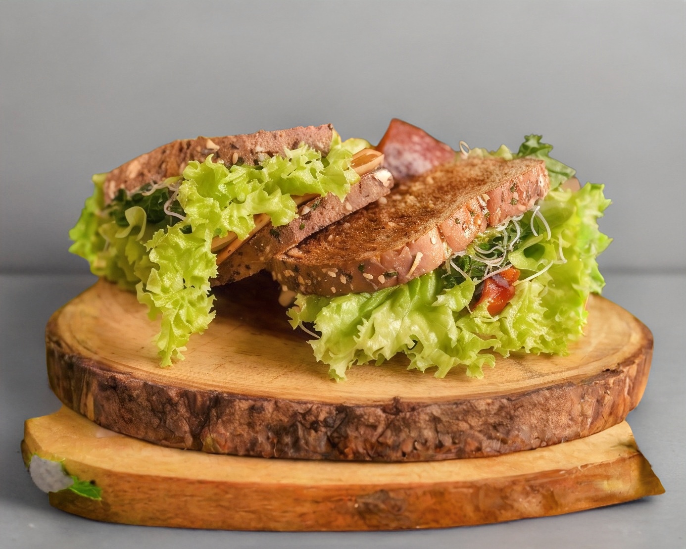 Pan de centeno, carne magra, lechuga hidropónica, aguacate, tomate champiñones queso panela. Acompañado de papas al horno o camote.