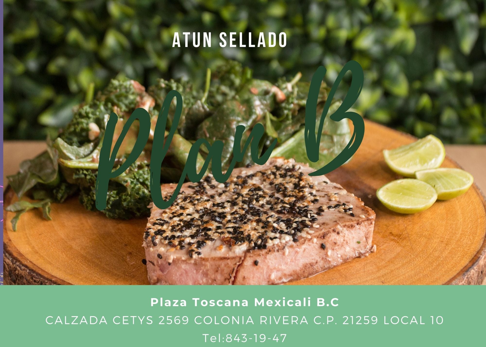 Medallón de atún de 200gr y ajonjolí, acompañado de ensalada bañada en aderezo de dátil con almendra quebrada.