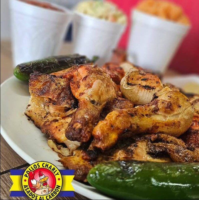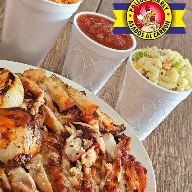 1 ½ Pollos con arroz, ensalada, tortillas, chiles y salsa