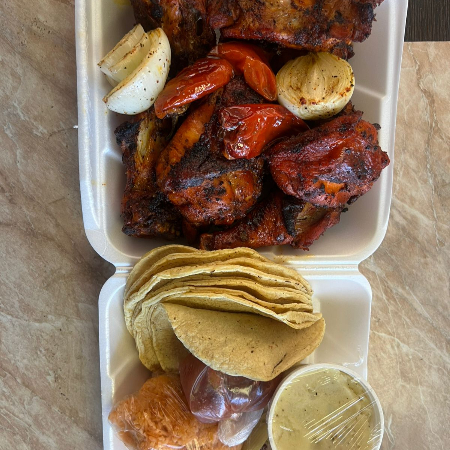 2pz. Pollo asado, salsa, ensalada,tortillas,