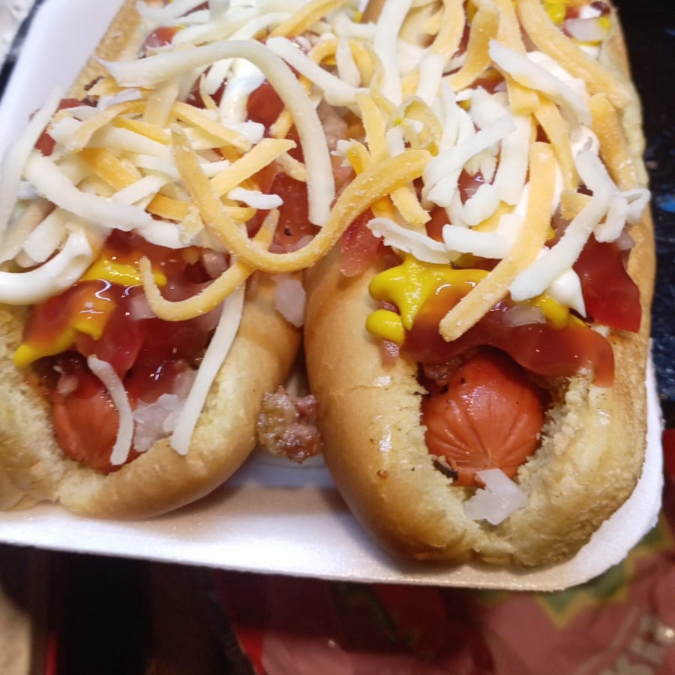 Hot dog tradicional mayonesa ketchup mostaza tocino cebollita caramelizada