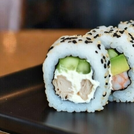 Pollo a la plancha, aguacate, Philadelphia y pepino.