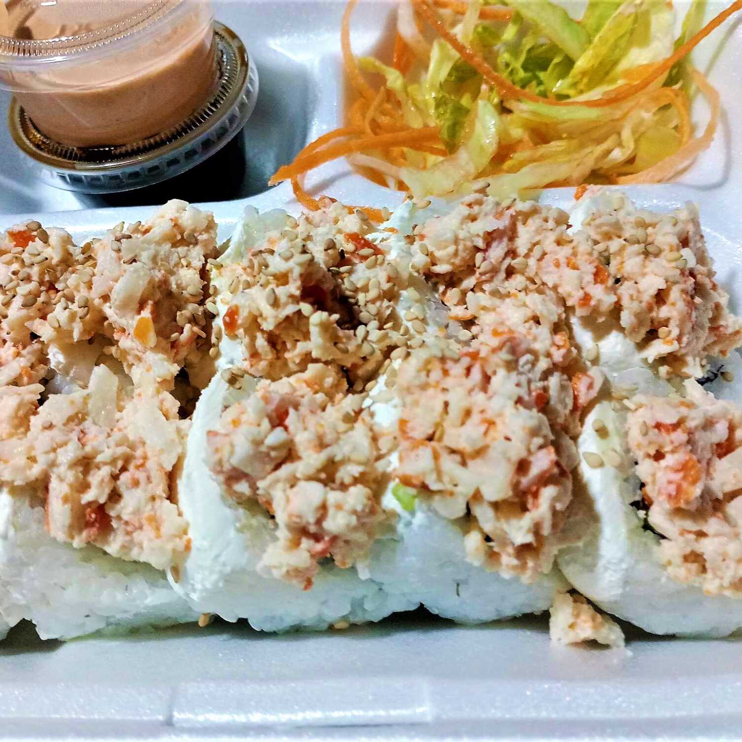 Aguacate, pepino, Queso Philadelphia por dentro. Topping salmón, camarón, jalapeño, pulpo, queso mix y bañado en salsa chipotle.