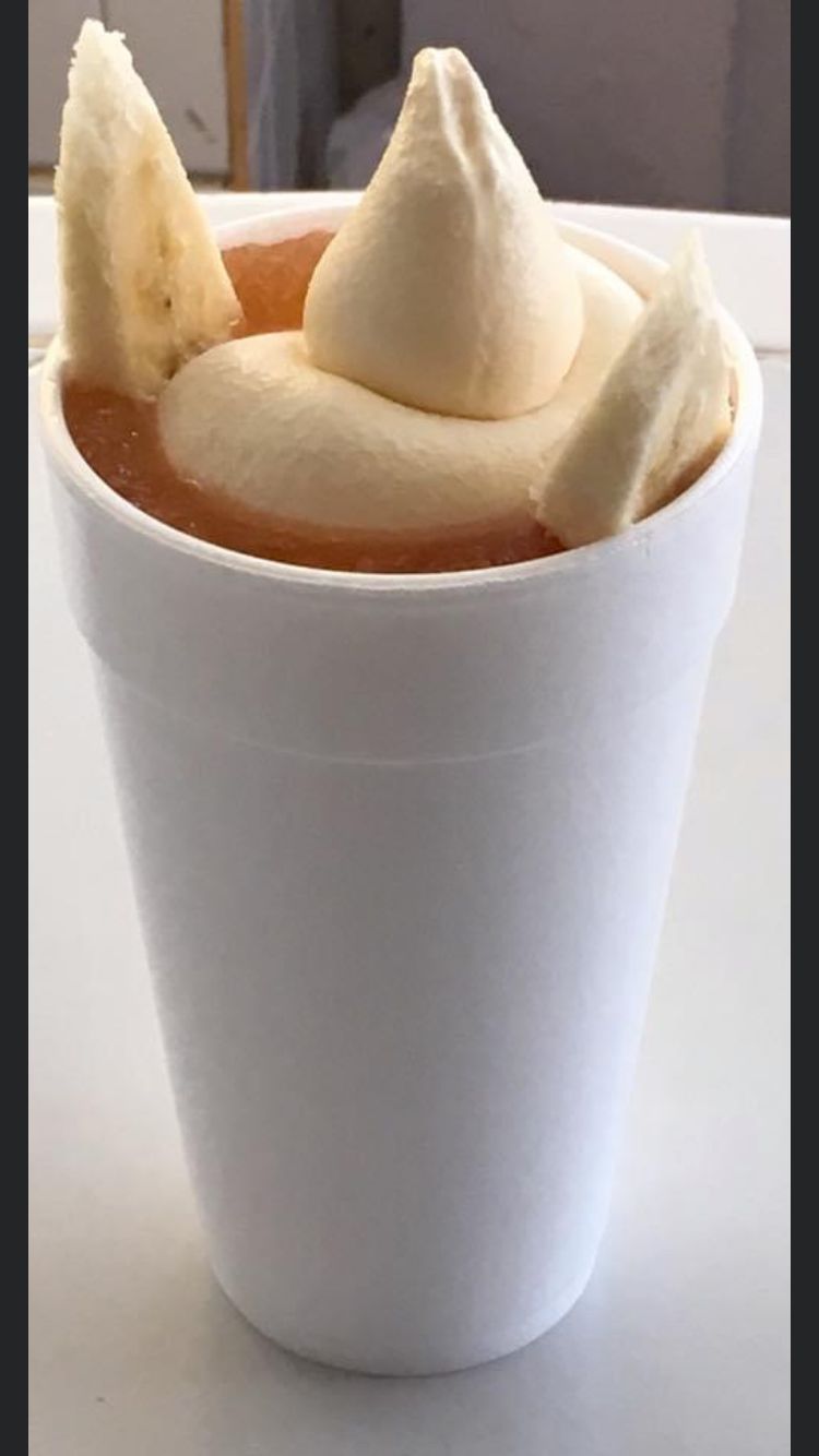 Leche entera, Hielo, Nieve de Vainilla y Sabor de la Fruta (durazno y mango)