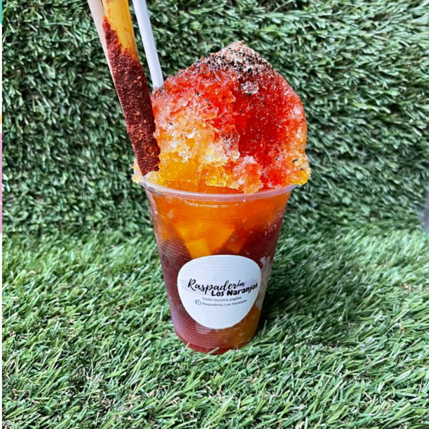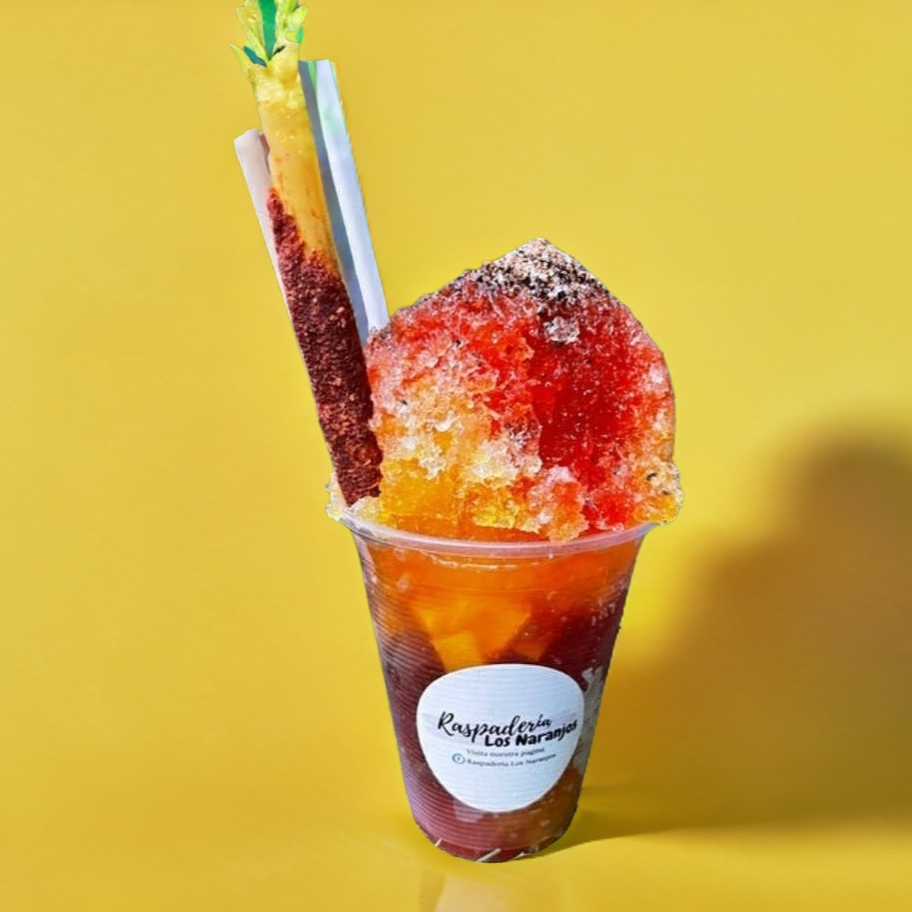 Es un Raspado a base de Chamoy, trae Chacachaca, Serpentina, Salado y Chile en Polvo Lucas