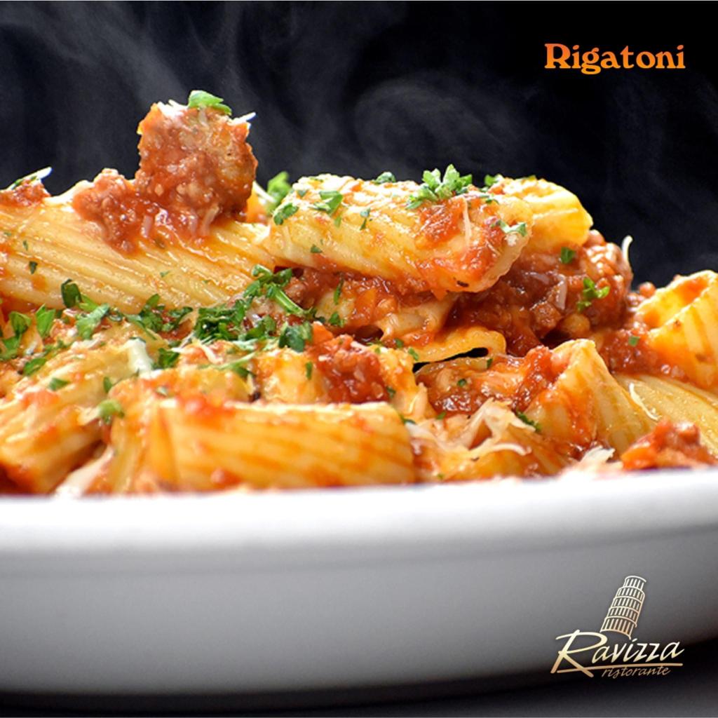 Deliciosa pasta bañada en crema de pimientos rojos acompañada con alcachofas, pechuga de pollo, más el toque especial de Ravizza.