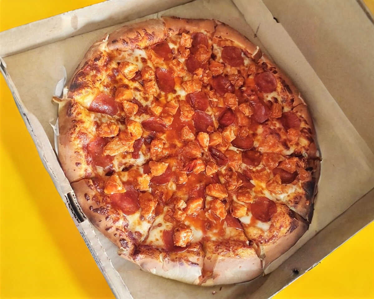 familiar de 16 pulgadas cortada en 12 pedazos con porcion de boneles + 2 ranch