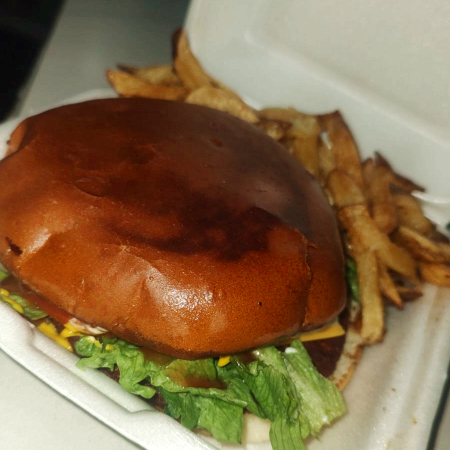 lechuga, cebolla y tomate, incluye papas fritas y capsup.